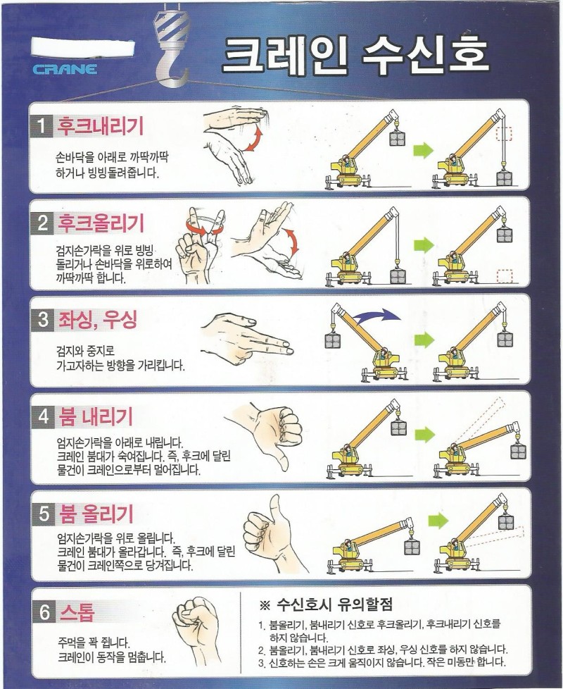 수신호만 잘해주셔도 크레인기사님들이 편안하게 안전하게 작업이 가능합니다