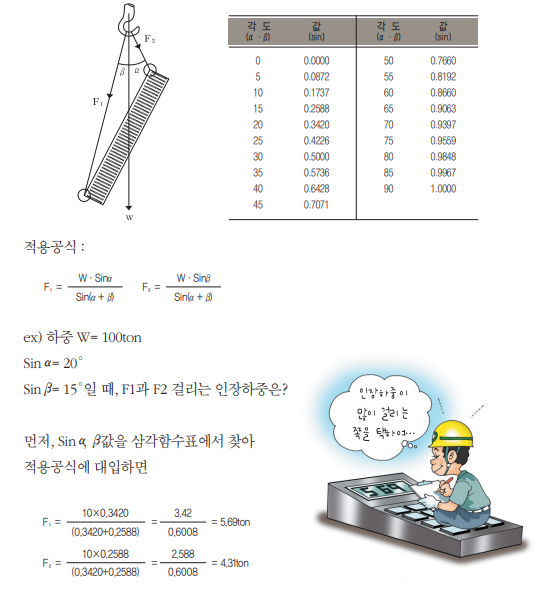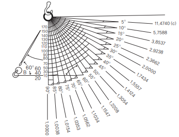 ▶ 슬링로프(Sling-rope)에 걸리는 각도에 따른 계수표 제시