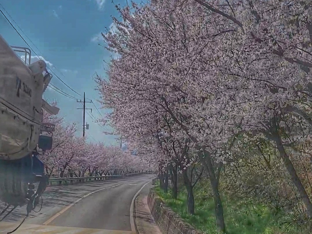 크레인타고 현장 오다가며 벚꽃구경을 하였습니다.